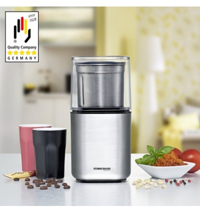 Прясно смляно кафе, вкусни смеси от подправки, вкусно песто, вкусни разядки, ядково брашно - няма проблем! Елегантната мелничка на  ROMMELSBACHER е идеална за смилане и раздробяване на: кафе на зърна, захар, подправки, билки, ядки, зърнени храни и др. С два различни контейнера от неръждаема стомана и с специални ножове в тях, според предназначението им:– Контейнер за смилане с 2 ножа– Универсален контейнер с 4 ножаЛесна и безопасна работа!Атрактивен уред, необходим за всяка изискана кухня!