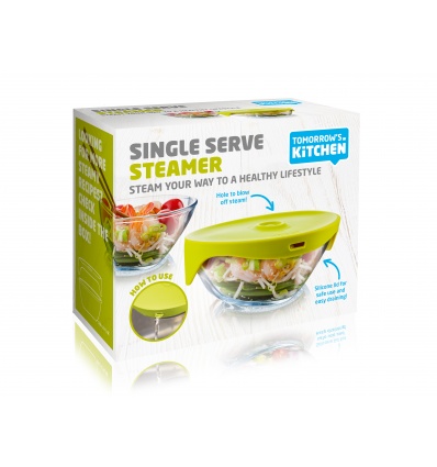 Забравете за пропуснатото хранене или променените вкусове и аромати с универсалната купа за готвене и задушаване на Tomorrow`s Kitchen. Купата е изключително здрава, изработена от боросиликатно стъкло, и е предназначена за приготвяне на зеленчуци, месо, риба или домашни птици. Формата ѝ позволява събиране на повече от една купа в микровълнова фурна със стандартен размер. Отцеждането на останалата вода става лесно, като повдигнете капака до предвидения за целта отвор.