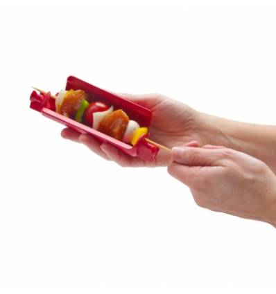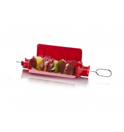 Приготвянето на заготовки за барбекю може да отнеме твърде много време и усилия. Това вече няма да се случва с иновативния прибор за шишчета на Tomorrow`s Kitchen. Изключително практичен прибор, който Ви позволява да приготвяте без усилия шишчета от месо, риба, плодове и зеленчуци по хигиеничен, лесен и безопасен начин. Отворете прибора и подредете парчетата във формата. Затворете и промушете шишчето в отвора, през храната, докато стигне до другия край. Отворете и извадете готовото шишче. Вече е готово за слагане на скарата. Когато вече е готово, можете да използвате същия прибор, за да свалите храната от шишчето. След употреба можете да почистите прибора в съдомиялна машина.