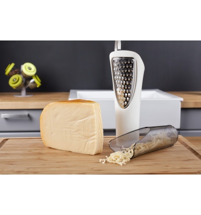 Ренде за сирена с контейнер • Размер: 7,5 x 23,3 x 6,5 cm• Тегло:0,15 kg • Материал: Неръждаема стомана, пластмаса• Подходящ за измиване в съдомиялна машинаПроизводител: TOMORROW`S KITCHEN / Холандия