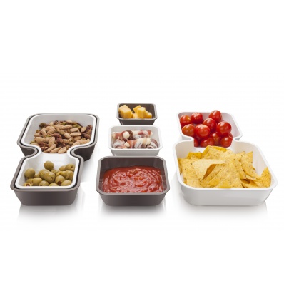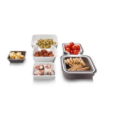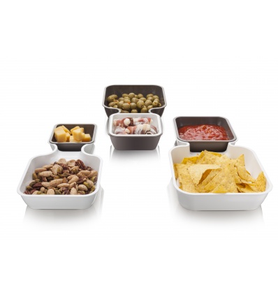TOMORROW`S KITCHEN Парти сет - 6 части • 6 броя различни по форма и размер купички• Компактност - прибират се една в друга• Размер: 30,3 x 16,5 x 4,5 cm• Тегло:0,52 kg • Материал:  пластмаса• Подходящи за измиване в съдомиялна машинаПроизводител: TOMORROW`S KITCHEN / Холандия