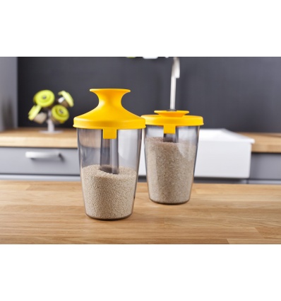 Съхранението и сервирането е лесно с канистерите със силиконови капаци на Tomorrow`s Kitchen. Този практичен диспенсър е идеален за захар, ориз и други продукти като макарони, зърнени храни, сладкиши и т.н. Ярко оцветен капак и патентованата система за затварянв Oxiloc са специално проектирани, за да гарантират, че диспенсера остава херметично затворен. Когато капакът е отворен, съдържанието може лесно да се извади. При необходимост, канистерът може да се държи в хладилник.