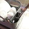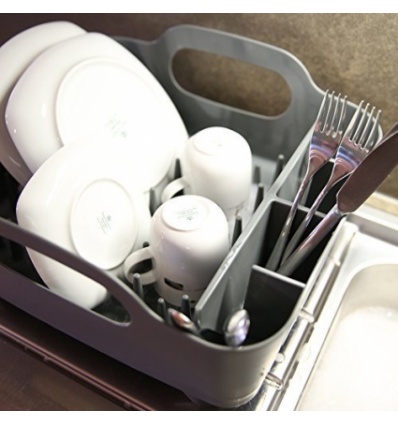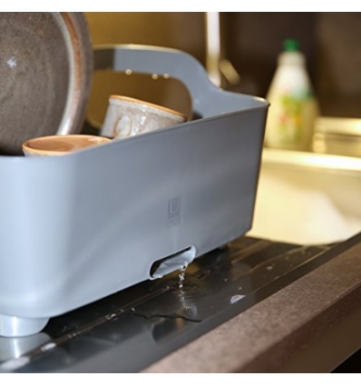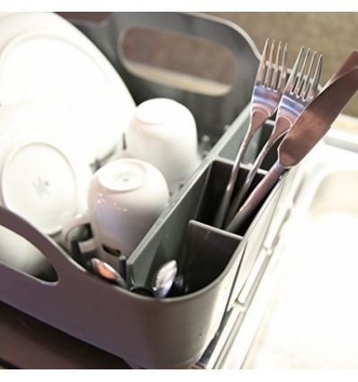UMBRA Сушилник за съдове “TUB“ ; • Цвят: светло сив• Размер: 38,1 x 35,6 x 9,1 cm • Материал: полипропилен ( BPA free )• Отделение за чинии и  чаши• Отделение за прибори• Дръжки за захващане• Вграден дренажен отвор• Може да се използва вътре или извън мивката• Подходящ за измиване в съдомиялна машина Производител: UMBRA / Канада DESIGN: RAFAEL URDANETA