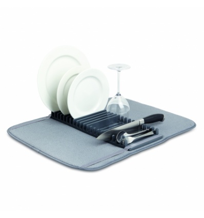 UMBRA Сушилник за съдове “UDRY “ ; • Цвят: сив• Размер: 61 x 45,7 cm• Лесен за сгъване и съхранение • Материал: – стойка за чинии:  полипропилен ( BPA free )– основа:  бързо съхнеща материя• Пране на основата• Стойката е подходяща за измиване в съдомиялна машина Производител: UMBRA / Канада DESIGN: DAVID GREEN