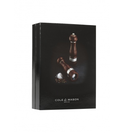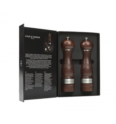 COLE & MASON Комплект мелнички за сол пипер “ARDINGLY FOREST“• Височина: 22 см.• Материал: дърво,стомана, керамика• Механизъм на мелницата за сол: керамичен • Механизъм на мелницата за черен пипер: закалена въглеродна стомана• Цвят: кафяв• Регулируеми настройки на мелене: 3 и 6 - степенен механизъм• Пълни (с черен пипер и сол)• Да не се мокрят с вода!• Не използвайте мелничките за различни от каменна сол и черен пипер продукти!!! Производител: Cole&Mason / Англия