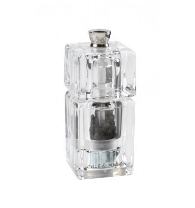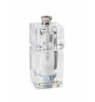 Класическият дизайн на мелничките от акрил добавя изтънченост към всяка маса, като същевременно остават ежедневен кухненски аксесоар. Регулирайте степента на меленето от фино до едро чрез затягане или разхлабване на механизма в основата. Мелничките "MINI CUBE" разполагат с механизъм от закалена въглеродна стомана (за мелничките за пипер) и усъвършенстван керамичен механизъм (за мелничките за сол). Механизмът Cole & Mason Precision не смачква зърната черен пипер, а ги стрива, за да освободи максималното количество аромати при всяко завъртане.
