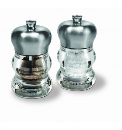 Класическият дизайн на мелничката от акрил добавя изтънченост към всяка маса, като същевременно остава ежедневен кухненски аксесоар. Регулирайте степента на меленето от фино до едро чрез затягане или разхлабване на топчето на капака. Мелничките ASCOT разполагат с механизъм от закалена въглеродна стомана (за мелничките за пипер) и усъвършенстван керамичен механизъм (за мелничките за сол). Механизмът Cole & Mason Precision не смачква зърната черен пипер, а ги стрива, за да освободи максималното количество аромати при всяко завъртане.