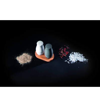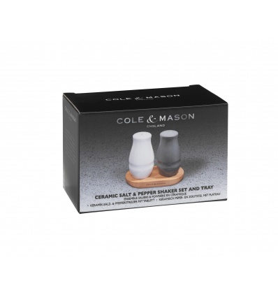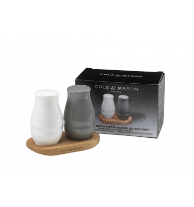 COLE & MASON Комплект за сол и пипер с дървена поставка• В комплекта: 2 бр солници + дървена поставка• Височина на солниците: 9,5 см• Материал: букова дървесина, керамика• Цвят: сив, бяло, букПроизводител: Cole&Mason / Англия