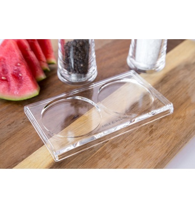 COLE & MASON Акрилна поставка за мелнички • Подходяща за пълната гама мелници на COLE & MASON• Размер: 9,5 х 16,5 х 1,3 см• Диаметър на кръговете: Ø 7,3 см• Материал: акрил• Цвят: прозраченПроизводител: Cole&Mason / Англия