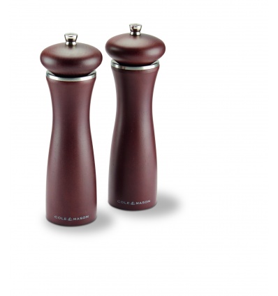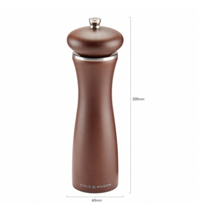 Класическият дизайн на мелничката от тъмно дърво добавя изтънченост към всяка маса, като същевременно остава ежедневен кухненски аксесоар. Регулирайте степента на меленето от фино до едро чрез затягане или разхлабване на топчето на капака. Мелничките Sherwood Forest разполагат с механизъм от закалена въглеродна стомана (за мелничките за пипер) и усъвършенстван керамичен механизъм (за мелничките за сол). Механизмът Cole & Mason Precision не смачква зърната черен пипер, а ги стрива, за да освободи максималното количество аромати при всяко завъртане.