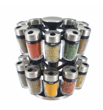 COLE & MASON Комплект за подправки “HERB & SPICE“ - 20 части + стойка • 18 бр. стъклени бурканчета с подправки, с възможност за презареждане •  2 бр. празни стъклени бурканчета• Височина на бурканчето: 85 мм• Хромирани капачки, които се затварят херметически и са с два вида отвори за правилно дозиране • Въртяща се стойка с удобна дръжка за носене; • Материали: стъкло, пластмаса, метал• Размери на стойката: 25 х 26 см.( Д х В)• Подправки: мащерка, босилек, риган, магданоз, розмарин, куркума, червен пипер, майорана, резене( див копър), копър, канела, кимион, джоджен, натрошено чили, градински чай, кориандър, къри, синапено семеПроизводител: Cole&Mason / Англия