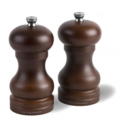 Класическият дизайн на мелничката от тъмно дърво добавя изтънченост към всяка маса, като същевременно остава ежедневен кухненски аксесоар. Регулирайте степента на меленето от фино до едро чрез затягане или разхлабване на топчето на капака. Мелничките Forest Capstan разполагат с механизъм от закалена въглеродна стомана (за мелничките за пипер) и усъвършенстван керамичен механизъм (за мелничките за сол). Механизмът Cole & Mason Precision не смачква зърната черен пипер, а ги стрива, за да освободи максималното количество аромати при всяко завъртане.