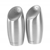 Съвременен и стилен комплект за сол и пипер, изработен от висококачествена неръждаема стомана. Наклоненият дизайн в горната част предотвратява запушването на дупките. Перфектните тапи на основата позволяват лесно и бързо зареждане. Идеални както за масата в трапезарията, така и за кухнята по време на готвене.