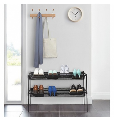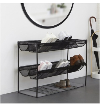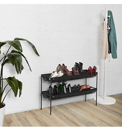 UMBRA Етажерка за обувки “SLING“ на две нива• Цвят: черен • Размери: 92 х 57,1 х 31,1cm• За 18 чифта обувки• Надграждане до 4 нива • Материал: метални тръби,  гумена мрежа Производител: UMBRA / Канада DESIGN: Eugenie de Loynes & Edouard Lauriault