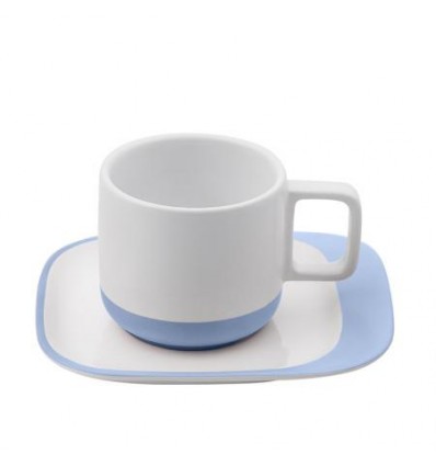 Комплект от серията Мечти в синьо за кафе, включващ керамични чаша и чинийка. Подходящи за почистване в миялна машина. Вместимост 220 мл.