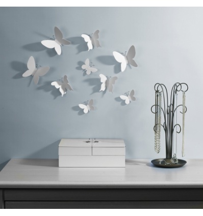 UMBRA Комплект декорация за стена “MARIPOSA“ - 9 бр. пеперуди - 3 размера - цвят бял