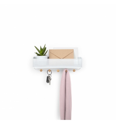 UMBRA Стенен органайзер с 5 бр закачалки “ESTIQUE“• Цвят: бял • За стенен монтаж• Подходящ за ключове, документи, аксесоари и др.• Размер: 31,8 x 9,5 х 9,5 cm• Материал: метал / дървоПроизводител: UMBRA / КанадаDESIGN:  WESLEY CHAU & EDWARD LEE