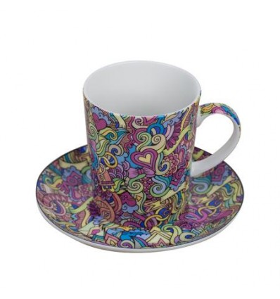 Абстракт сърца чаша + чинийка
