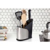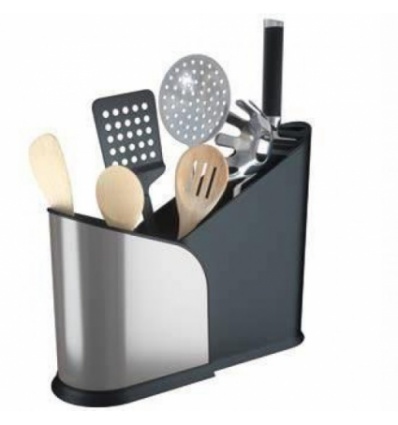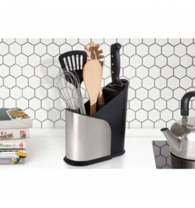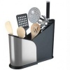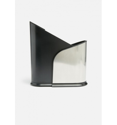 UMBRA Поставка за кухненски прибори и ножове “FURLO“• Цвят: инокс / черен • Размери: 22,5 x 9,9 x 24,1 cm• Разтяга се до 28 см• Отделение за ножове• Основата е от гума, против приплъзване • Материал: стомана, гума, пластмаса Производител: UMBRA / Канада DESIGN:  UMBRA STUDIO