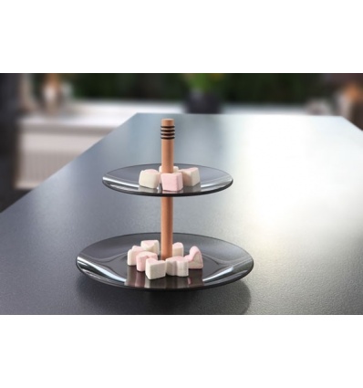 PHILIPPI Етажерка за сладкиши "JOANNA“ • Материал: тонирано сиво стъкло, дърво бук• Размери: Ø 27 х 25 см(h)• Производител: PHILIPPI / Германия Design: Boris Kupczik