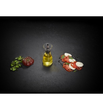 Този продукт е проектиран като практично и елегантно решение за съхранение и дозиране на зехтин, олио, оцет и други течности. Специалната система за връщане на капките означава, че не трябва да излиза олио или оцет отстрани на бутилката, т.н "подливане". Шишето е изработено от стъкло - материал, който не поема аромати и се почиства лесно.