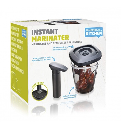 С този вакуумен комплект можете да мариновате месо, риба, пиле и зеленчуци само за няколко минути. Чрез помпата се създава вакуум, който отваря порите и влакната на месото и позволява дълбоко проникване на маринатата. Маринованите храни имат по богат вкус, а в купата ще ги предпазите и  от външната топлина на барбекюто, грила, фурната или тигана. Лесен за използване, спестява време и мариноването става за минути.