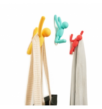 UMBRA Комплект от 3 бр закачалки “BUDDY“• Цвят: червено, синьо и жълто• За стенен монтаж• Включени монтажни елементи• Натоварване на всяка закачалка: до 2,3 кг• Размер на една закачалка: 7 x 17 х 8 cm• Материал: ABS пластмасаПроизводител: UMBRA / КанадаDESIGN:  ALAN WISNIEWSKI
