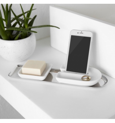 UMBRA Стоманена поставка за аксесоари “JUNIP“ “• Цвят: хром• Размер: 28,8 х 7,7 х 1 cm• Материал: неръждаема стоманаПроизводител: UMBRA / КанадаDESIGN:  GENSLER