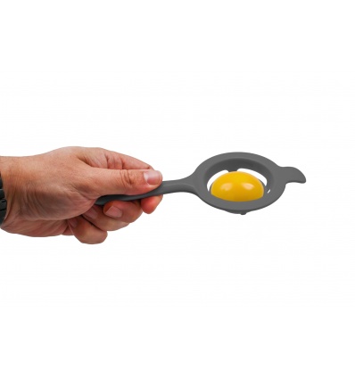 Иновативен и интелигентен сепаратор за лесно разделяне на белтъци и жълтъци. Просто поставете сепаратора върху купа или чаша и счупете яйцето в него. Жълтъкът ще остане в сепаратова, а белтъкът – в купата/чашата.