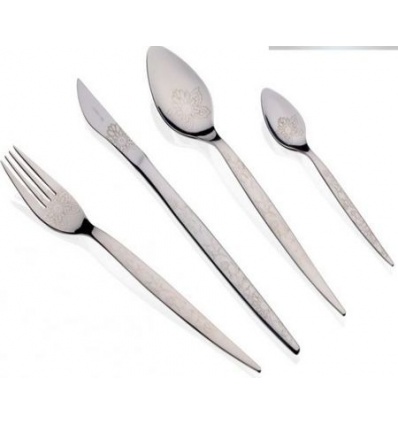 HERDMAR Комплект прибори за хранене "TIFFANY №1" за 6 човека от 42 части. • Изработени от неръждаема стомана 18/10• Лазерно гравирани• Подходящи за почистване в съдомиялна машина. Комплектът включва: • Нож за хранене: 6 бр. • Вилица за хранене: 6 бр. • Лъжица за хранене: 6 бр. • Десертна лъжичка: 6 бр.• Десертни ножа: 6 бр • Десертни вилици: 6 бр • Лъжички за чай: 6 брПРОИЗВОДИТЕЛ: HERDMAR / Португалия