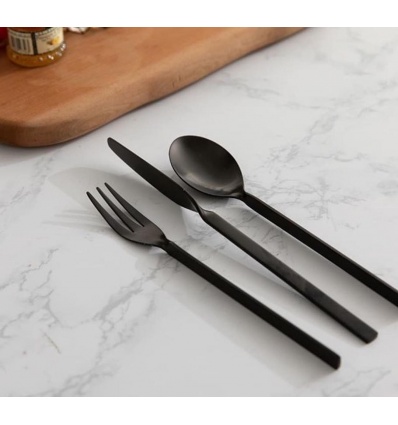 HERDMAR Комплект прибори за хранене “MALMO“ - за 6 човека от 36 части - с PVD покритие черен/мат • Изработени от неръждаема стомана 18/10• PVD покритие. • Подходящи за почистване в съдомиялна машина.Комплектът включва: • Нож за хранене: 6 бр. • Вилица за хранене: 6 бр. • Лъжица за хранене: 6 бр. • Десертна лъжичка: 6 бр. • Десертни ножа: 6 бр• Десертни вилици: 6 брПРОИЗВОДИТЕЛ: HERDMAR / Португалия