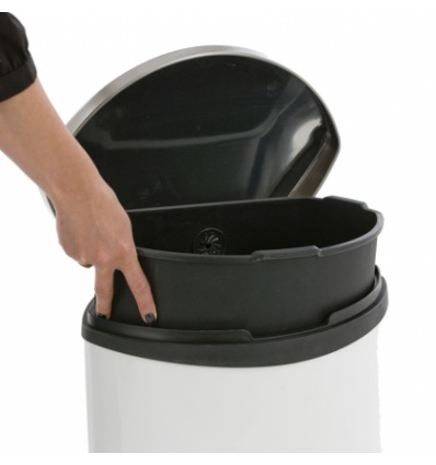 EKO EUROPE Кош за отпадъци с педал “SHELL“ • Материал: прахово боядисана неръждаема стомана, пластмаса• Цвят: бял• Вместимост: 10 литра • Размери: 29,5 х 25,6 х 45 см.• Вътрешна пластмасова кофа• Безшумно и плавно отваряне и затваряне на капака• Фиксатор за найлонов чувал / торбаПроизводител: EKO EUROPE / Холандия