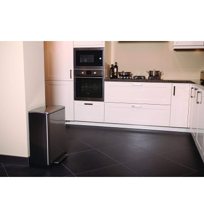 EKO EUROPE Кош за отпадъци с педал “E-CUBE“ • Материал: матирана неръждаема стомана, пластмаса• Вътрешно отделение на капака за филтър с активен въглен, който абсорбира миризмите• Цвят: хром• Широк педал • Дръжка на задната страна за лесно преместване• Вместимост: 50 литра • Размери: 50 х 34,5 х 65 см.• Вътрешна пластмасова кофа• Покритие срещу пръстови отпечатъци• Безшумно и плавно отваряне и затваряне на капака• Функция за заключване на капака в отворена позиция, за лесно почистване или смяна на торбата• Фиксатор за найлонов чувал / торбаПроизводител: EKO EUROPE / Холандия