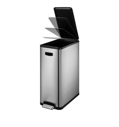 EKO EUROPE Кош за отпадъци с педал “ECOSLIM“ • Материал: матирана неръждаема стомана, пластмаса• Цвят: хром / черен• Вместимост: 45 литра • Размери: 53,3 х 27,6 х 66,1 см.• Вътрешна пластмасова кофа• Покритие срещу пръстови отпечатъци• Безшумно отваряне и затваряне на капака• Функция за заключване на капака в отворена позиция, за лесно почистване или смяна на торбата• Фиксатор за найлонов чувал / торбаПроизводител: EKO EUROPE / Холандия