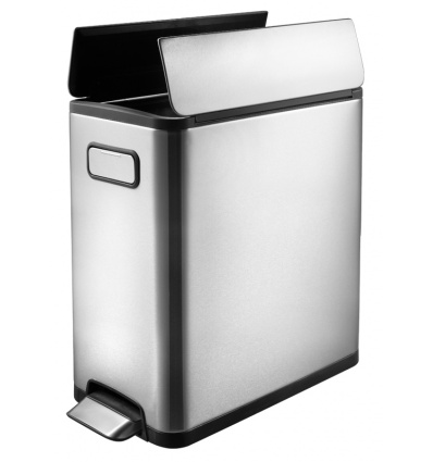 EKO EUROPE Кош за отпадъци с педал “ECOFLY“ • Материал: матирана неръждаема стомана, пластмаса• Капак с две крила• Цвят: хром / черен• Вградени колела за лесно преместване• Вместимост: 20 литра • Размери: 25,5 х 44,8 х 46,5 см.• Вътрешна пластмасова кофа• Покритие срещу пръстови отпечатъци• Безшумно отваряне и затваряне на капака• Функция за заключване на капака в отворена позиция, за лесно почистване или смяна на торбата• Фиксатор за найлонов чувал / торбаПроизводител: EKO EUROPE / Холандия