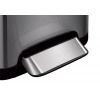 Дизайнът с две крила заема малко вертикално пространство, лесно е да се побере  под вашия кухненски плот или друго тясно пространство. Вградените колела, поставени под кофата и допълнителна дръжка отпред, улесняват преместването. Педалът е от неръждаема стомана