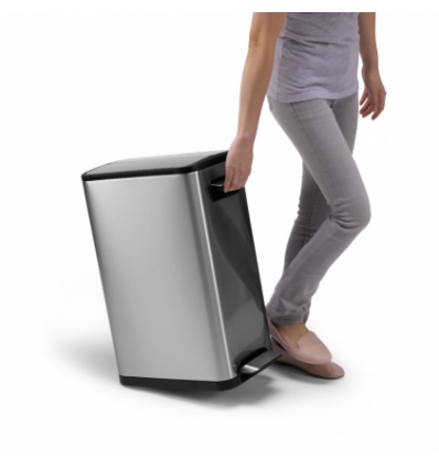 Дизайнът с две крила заема малко вертикално пространство, лесно е да се побере  под вашия кухненски плот или друго тясно пространство. Вградените колела, поставени под кофата и допълнителна дръжка отпред, улесняват преместването. Педалът е от неръждаема стомана