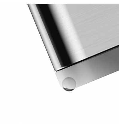 Дизайнът с две крила заема малко вертикално пространство, лесно е да се побере  под вашия кухненски плот или друго тясно пространство. Вградените колела, поставени под кофата и допълнителна дръжка отпред, улесняват преместването. Педалът е от неръждаема стомана