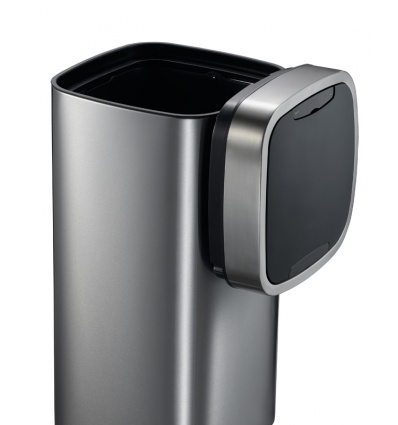 Стилен, квадратен кош за отпадъци със сензор за движение. Капакът може да бъде свален и окачен от Easy-clip по време на смяна на торбата или при почистване.