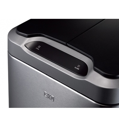 EKO EUROPE Сензорен кош за отпадъци “PHANTOM“ • Материал: матирана неръждаема стомана, пластмаса• Цвят: хром / черен• Капак с две крила• Сензорен механизъм с превключвател, позволява да се отваря и затваря или от сензор или от бутон за докосване• Вместимост: 30 литра • Размери: 25 х 37,5 х 62,4 см.• Вътрешна пластмасова кофа • Покритие срещу пръстови отпечатъци• Фиксатор за найлонов чувал / торба• Безшумно отваряне и затваряне на капака• Захранване: 6 бр. батерии АА (не са включени)Производител: EKO EUROPE / Холандия