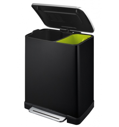 EKO EUROPE Кош за разделно събиране на отпадъци с педал “E-CUBE“ • Материал: неръждаема стомана, прахово боядисана• Вътрешно отделение на капака за филтър с активен въглен, който абсорбира миризмите• Цвят: черен• Широк педал • Дръжка на задната страна за лесно преместване• Вместимост: (1 х 10) + (1 x 9) литра • Размери: 36,6 х 32 х 44,5 см.• 2 бр. вътрешни пластмасови кофи• Безшумно и плавно отваряне и затваряне на капака• Функция за заключване на капака в отворена позиция, за лесно почистване или смяна на торбата• Фиксатори за найлонов чувал / торбаПроизводител: EKO EUROPE / Холандия