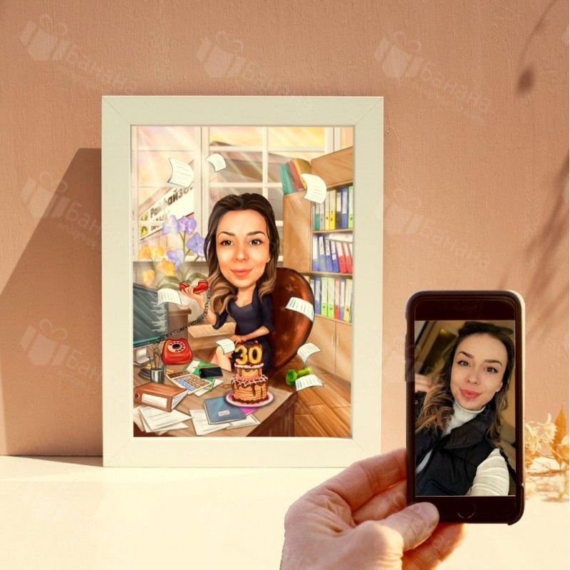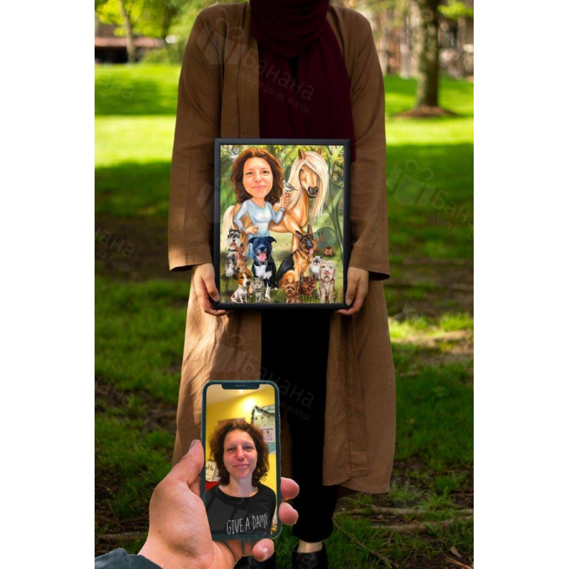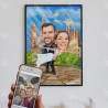Вашата карикатура се отпечатва върху висококачествена хартия или канава/платно в избран от Вас размер.