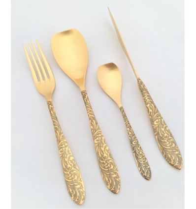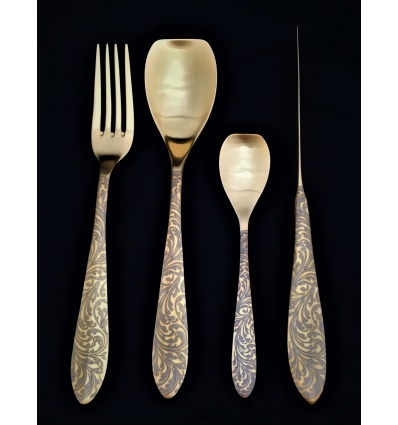 HERDMAR Комплект прибори за хранене“LONIOS № 2" - 24 части - позланени мат, гравирани