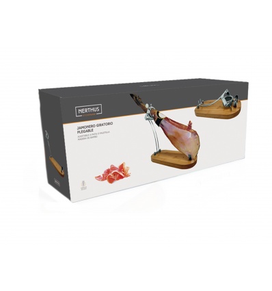 Стойката за бут и хамон на Vin Bouquet е с въртящ за държач, за да можете да регулирате позицията на бута/плешката. Държачът е сгъваем за оптимизиране на съхранението.