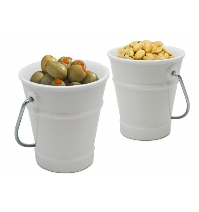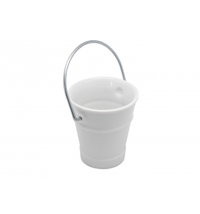 Забавна и оригинална мини кофичка за сервиране на ядки, хапки, конфитюр, сосове или ордьоври. Изработена от качествен порцелан, с метална дръжка.