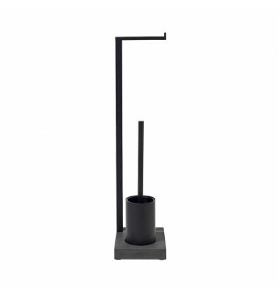 BLOMUS Комплект стойка за тоалетна хартия и четка за тоалетна MENOTO • Цвят: черен• Височина: 64,5 см • Размер: 15 х 20 см • Материал: прахово боядисана неръждаема стомана, пластмаса, основа - черен технически камък • Производител: BLOMUS, Германия DESIGN: Flöz Design