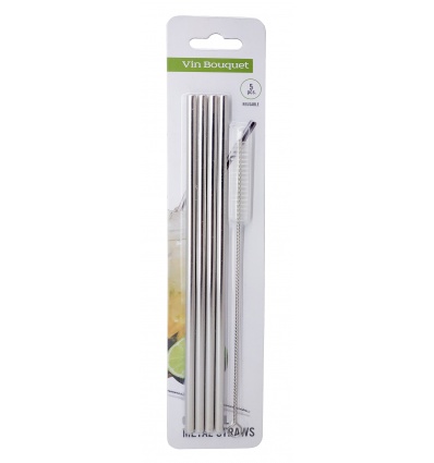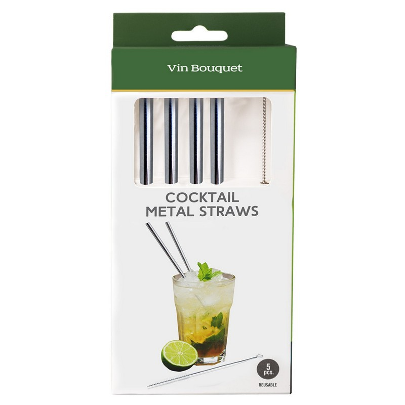 Vin Bouquet Коктейлни метални сламки - прави• Размери: - Дължина: 18 см. - Диаметър: Ø 5 мм.• Материал: Стомана•Комплектът съдържа: - Метални сламки - 4 бр. - Четка за почистване - 1 бр.• Производител: Vin Bouquet, Испания