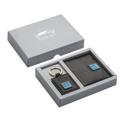 Автомобилен сет, включващ ключодържател и калъф от естествена кожа с лого. Размери: калъф за документи: 10*8 см, ключодържател: 9.5 см