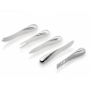 Комплектът ножове за сирена SPACE е изработен от високо полирана неръждаема стомана. Независимо дали е твърдо, меко, прясно или нарязано сирене - перфектният разрез е гарантиран с всеки един от петте ножа, за всички възможни разновидности и зрялост. След употреба умело проектираната ръкохватка гарантира, че режещата повърхност винаги е изправена.