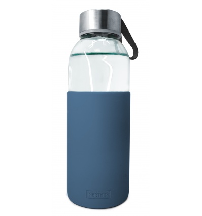 Nerthus Стъклена бутилка със силиконов протектор - 400 мл. - синя